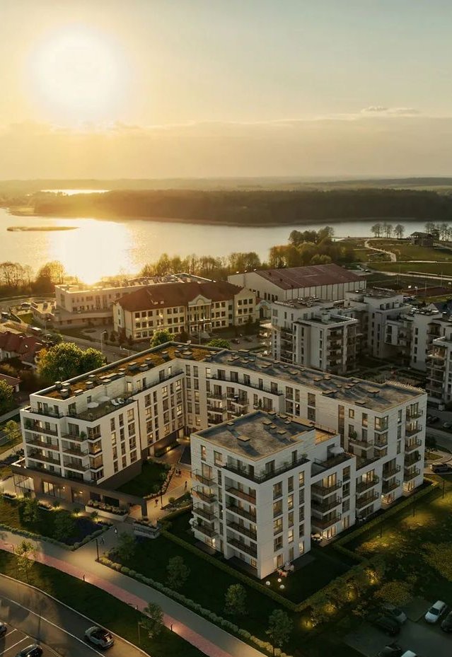 Jasnobeżowe elewacje z elementami ciepłego drewna to wyraz połączenia nowoczesnych, minimalistycznych trendów z darami przyrody. Przestronne, oszklone balkony zapewnią dodatkową przestrzeń i pozwolą cieszyć się bliskością otaczającej natury każdego dnia. Tarasy dachowe z widokiem na jezioro i zielone tarasy parterowe zagwarantują dodatkowe miejsce do odpoczynku na świeżym powietrzu.