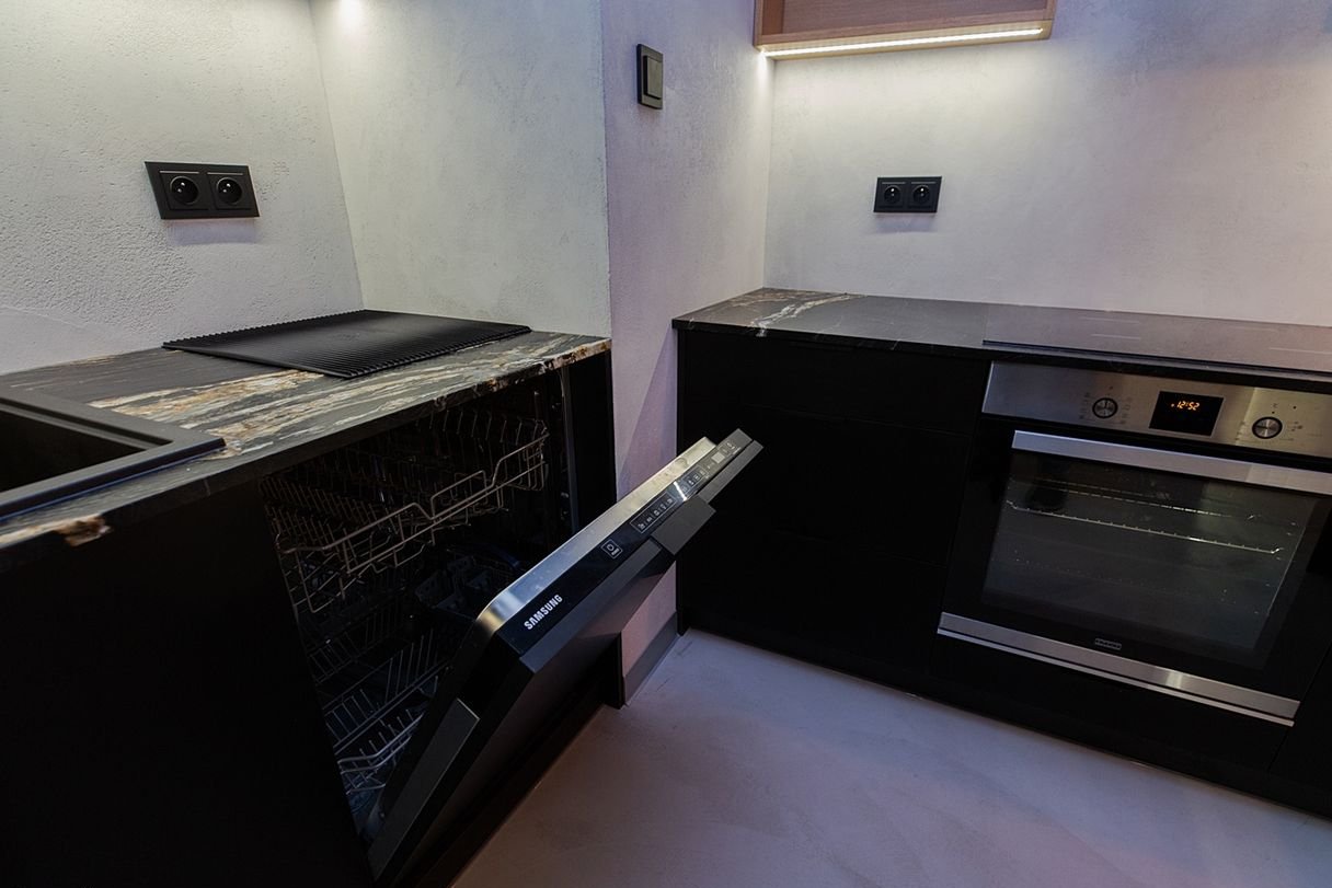 Kuchnia i zabudowy wykonane są na zamówienie / na wymiar, z dużą ilością miejsca do przechowywania.
