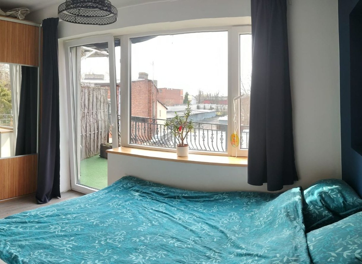 Mieszkanie znajduje się dość daleko od ulicy i jest otoczone zielenią , dzięki czemu jest tu cicho i spokojnie.