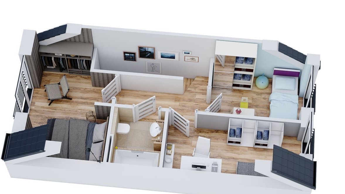 Układ pomieszczeń został zaprojektowany z myślą o jak najlepszym komforcie przyszłych Właścicieli. Jednocześnie, konstrukcja budynku pozwala na dowolne projektowanie przestrzeni wewnątrz lokali, co daje możliwość aranżowania ich według potrzeb przyszłych Właścicieli.