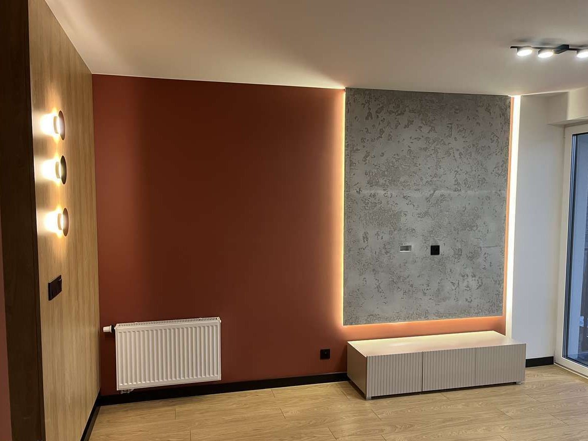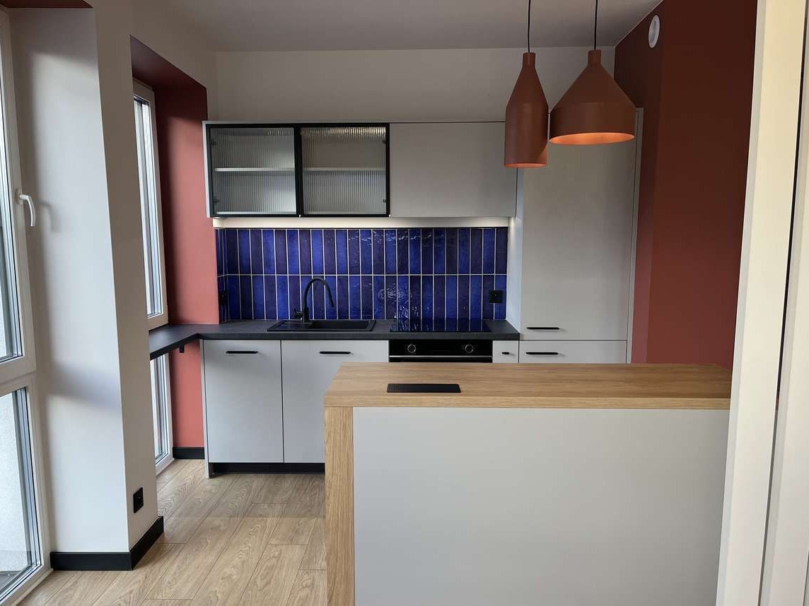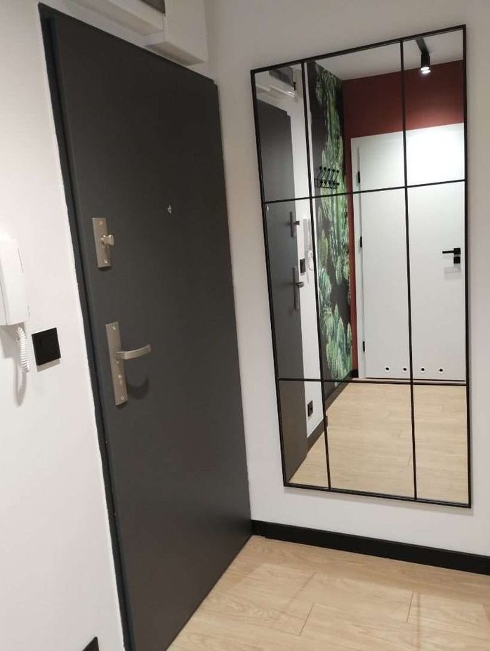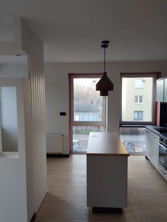 Mieszkanie składa się z salonu z aneksem kuchennym, wydzielonej sypialni, którą można przerobić jako zamknięty pokój , łazienki z wc oraz przedpokoju. Mieszkanie urządzone w wysokim standardzie. Meble w kuchni i łazience wykonane na wymiar przez stolarza. Kuchnia wyposażona w AGD firmy Beko: piekarnik, zmywarka, płyta indukcyjna, lodówka no frost. Na podłodze wysokiej jakości panele. Łazienka wykończona glazurą i terakotą wyposażona w kabinę prysznicową z deszczownicą, umywalkę, podświetlane lustro oraz wc, podejścia przygotowane pod pralkę. W całym mieszkaniu oświetlenie renomowanej firmy Nowodvorski.