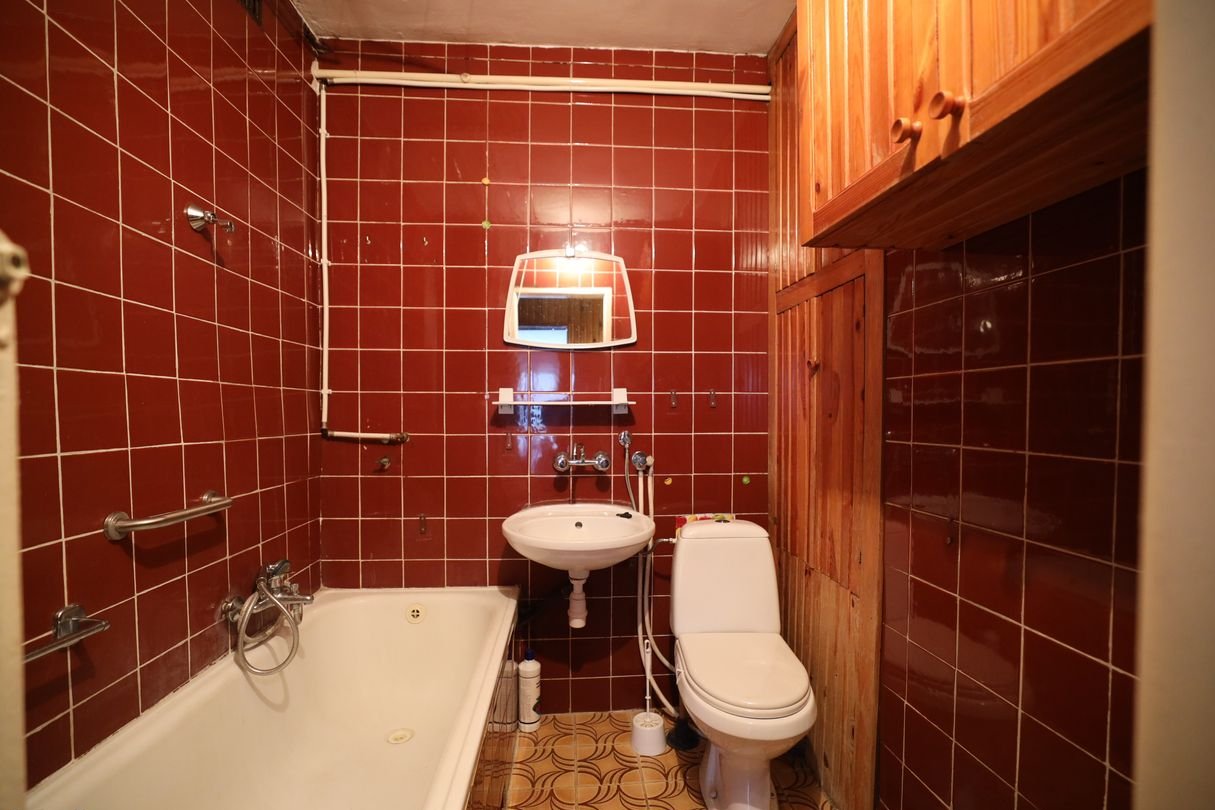 • Łazienka: wanna, umywalka, lustro, WC, szafka (brak piecyka gazowego).