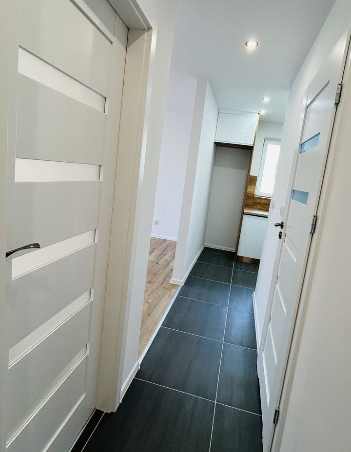 W mieszkaniu został wykonany generalny remont, i praktycznie wszystko jest nowe, podczas remontu zostały również wymienione główne piony wodne i kanalizacyjne więc nie zaskoczy Cię sytuacja że nagle będzie trzeba rozbierać kuchnię i część łazienki w celu wymiany. Podczas remontu zastosowano materiały wysokiej klasy a wykończenie jest spójne i solidne. Kuchnia została zamontowana na wymiar z wysokiej jakości materiałów.