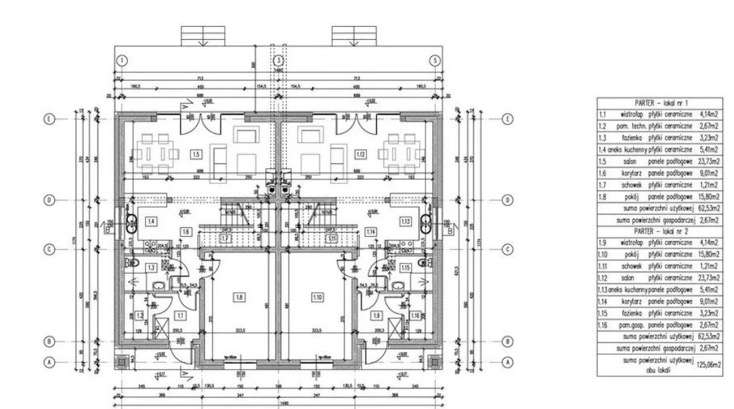Dom wykonany w tradycyjnej technologii z solidnym ociepleniem (styropian, wełna), dach kryty ceramiczną dachówką. Układ pomieszczeń zaprojektowany z myślą o komforcie użytkowania – idealny nawet dla większej rodziny.