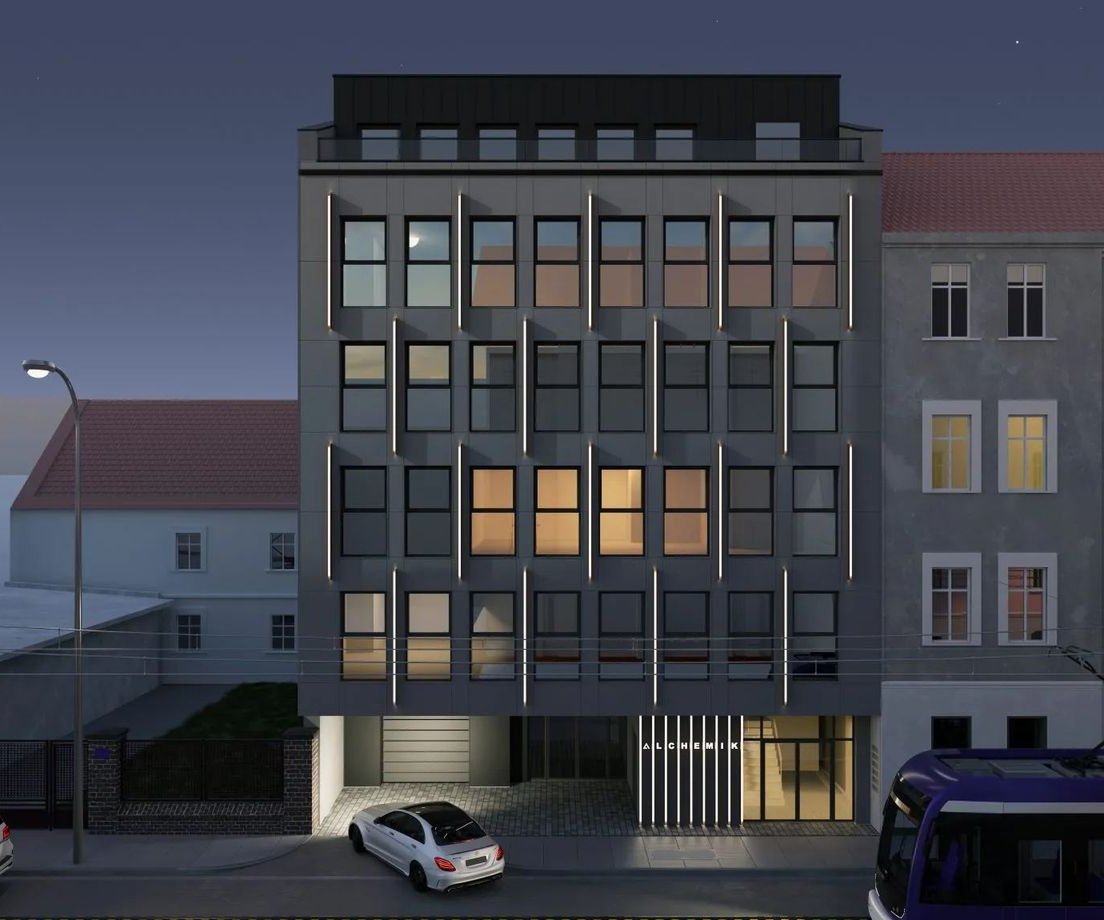 Mieszkaj magicznie w kameralnym budynku w Starym Podgórzu.Alchemik to nowoczesny budynek o klasycznej architekturze. Wyglądem nawiązuje do prostej, dziewiętnasto- i dwudziestowiecznej zabudowy mieszczańskiej, znajdującej się w bezpośrednim sąsiedztwie. Projektowany budynek będzie składał się z dwóch części zróżnicowanych pod katem wysokości, połączonych ze sobą garażem podziemnym oraz parterem z częścią usługową. Frontowa bryła budynku zaplanowana została pod lokale użytkowe oraz jeden apartament mieszkalny z widokowym tarasem na ostatnim piętrze. Druga, niższa bryła budynku wkomponowana subtelnie w część dziedzińca tworzyć będzie niższą, czterokondygnacyjną partię budynku. Przeznaczona zostanie pod 12 lokali mieszkalnych o zróżnicowanym metrażu od 25 m2 do 148 m2. Budynek wyposażono w dwie niezależne klatki schodowe, cichobieżne windy oraz garaż podziemny. Wejście do budynku oraz wjazd do garażu będzie odbywał się z ulicy Kalwaryjskiej.
