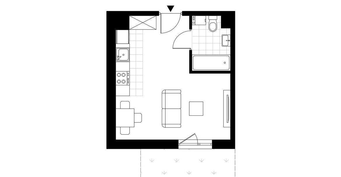 1-pokojowe mieszkanie numer A104 na parterze w budynku A1 w Inwestycji Osiedle Kompas Dewelopera Proneko