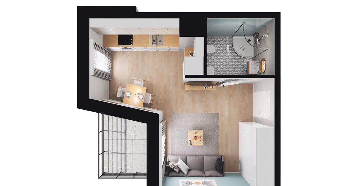 1-pokojowe mieszkanie numer B.34 na 3. piętrze w budynku B w Inwestycji Kapitanat Dewelopera Budlex