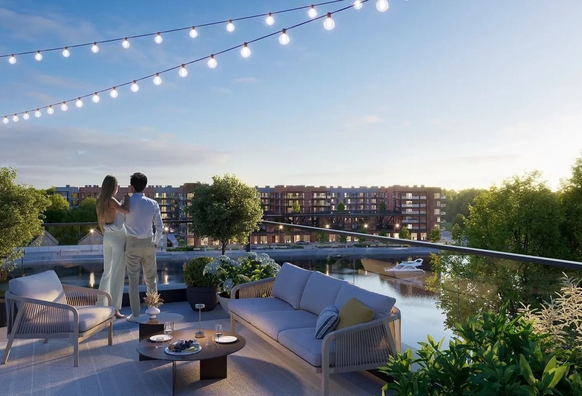 Wyjątkowym atutem inwestycji są 100-metrowe tarasy z panoramicznym widokiem na Motławę, port i gdańską stocznię – jedyne takie w mieście.