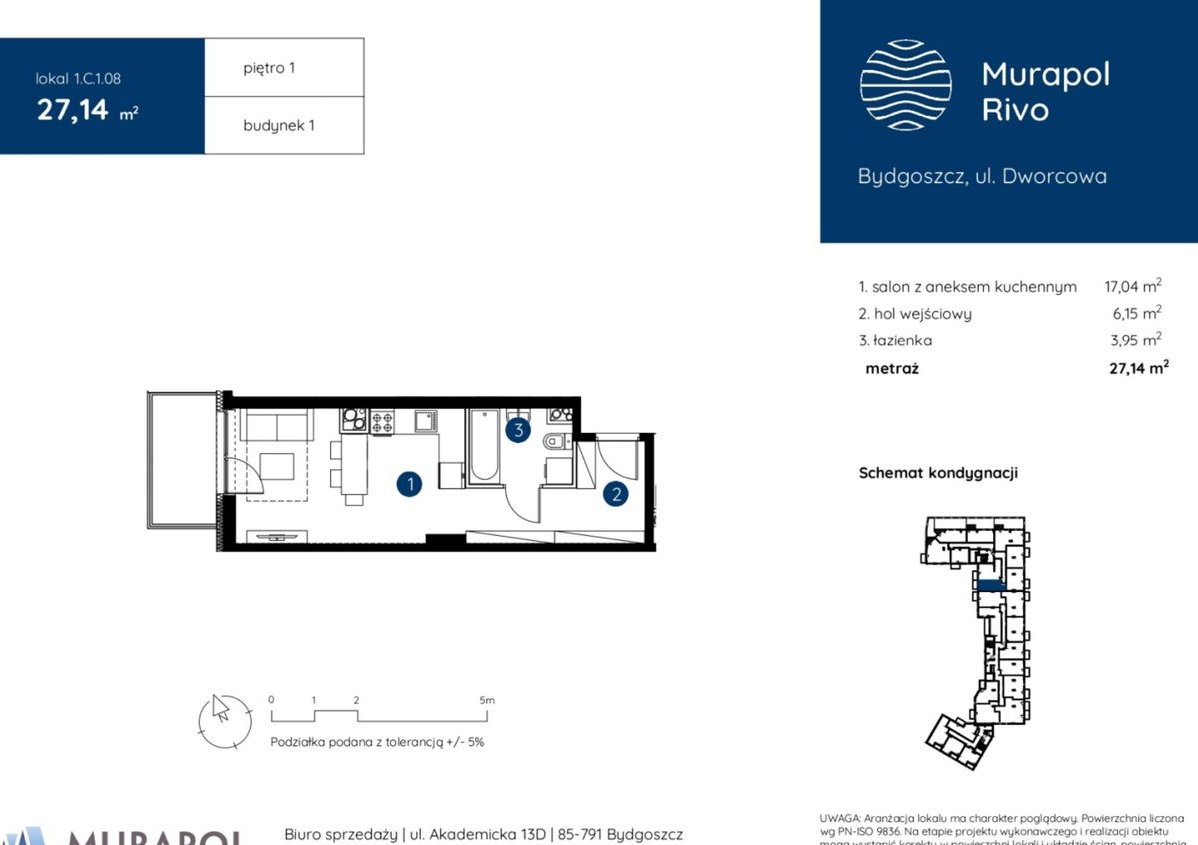 1-pokojowe mieszkanie numer 1.C.1.08 na 1. piętrze w Inwestycji Murapol Rivo Dewelopera Murapol