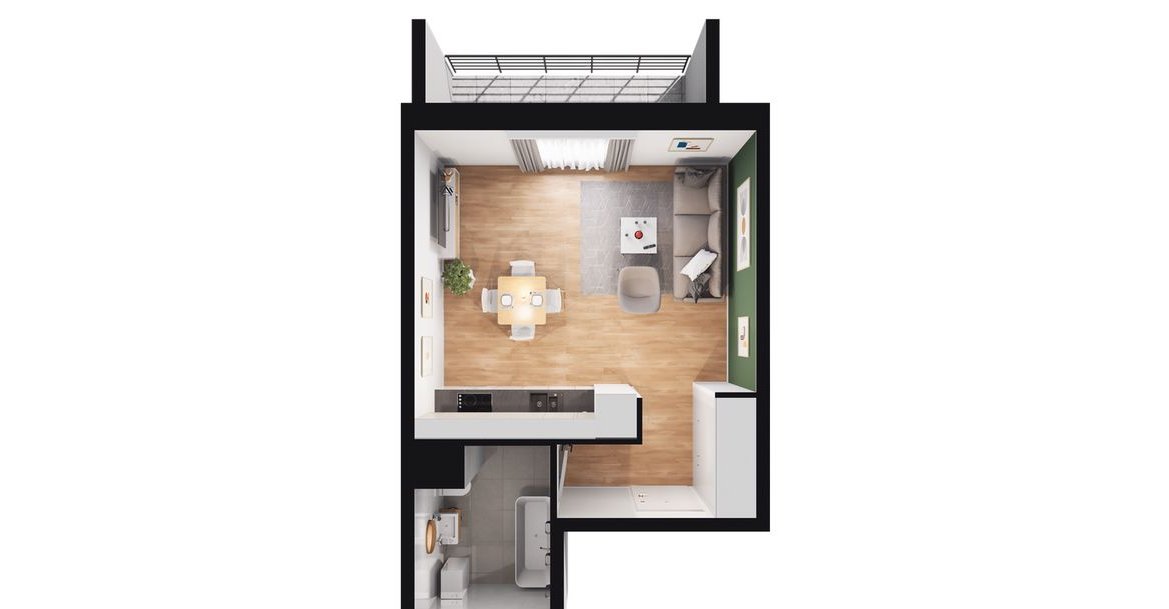 1-pokojowe mieszkanie numer B/2/11 na 2. piętrze w budynku B w Inwestycji Wielka 16 Dewelopera Toscom Development