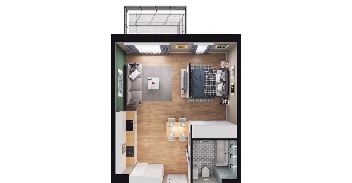1-pokojowe mieszkanie numer J.1M14 na 1. piętrze w budynku J w Inwestycji Nadmotławie Apartments Dewelopera Grupa ROBYG Gdańsk