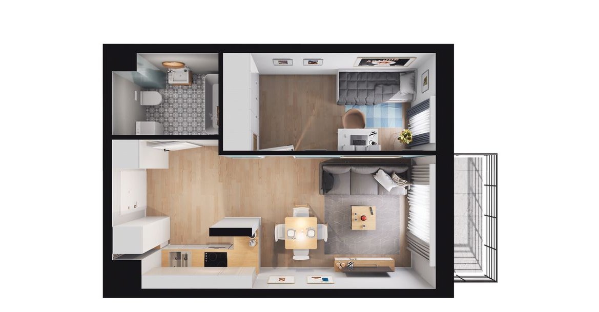 1-pokojowe mieszkanie numer 3_C_6_02 na 6. piętrze w budynku 3 w Inwestycji Murapol Agosto Dewelopera Murapol