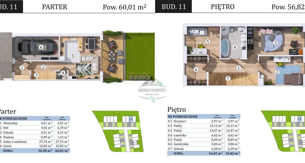 Inwestycja oferuje domy w zabudowie szeregowej z własnymi dużymi ogrodami. Wielkie okna oraz ustawienie domów na działce, zapewniają doskonałe doświetlenie w części dziennej, stanowiącej jednocześnie wyjście do ogrodu. Do każdego domu prowadzi długi podjazd.