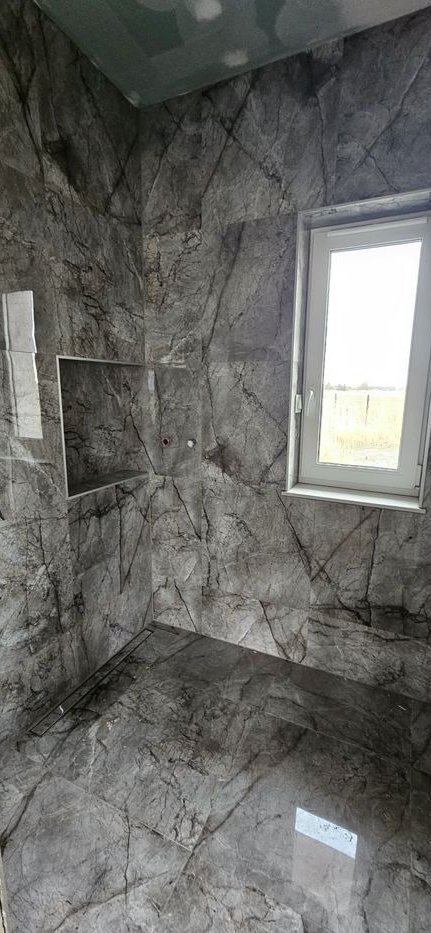 Dom wymaga wykończenia wnętrz. W łazience na parterze są położone płytki na ścianach i posadzce. Na parterze i klatce schodowej są położone gładzie i ściany są przygotowane do malowania.