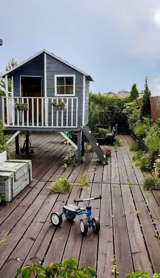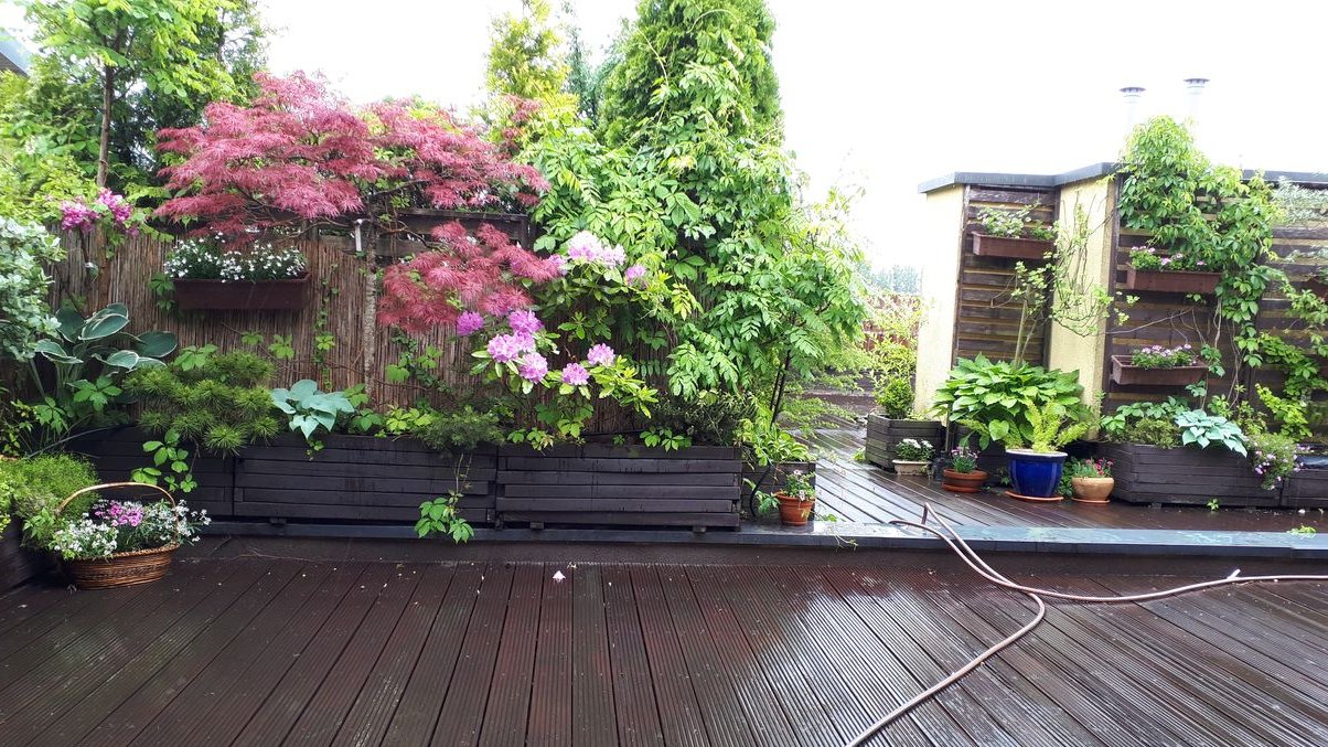 Taras, a właściwie piękny, zagospodarowany ogród z wieloletnimi roślinami ( automatyczne nawadnianie) i miejscem zabawy dla dzieci. Nic nie zasłania nieba nad głową;-)