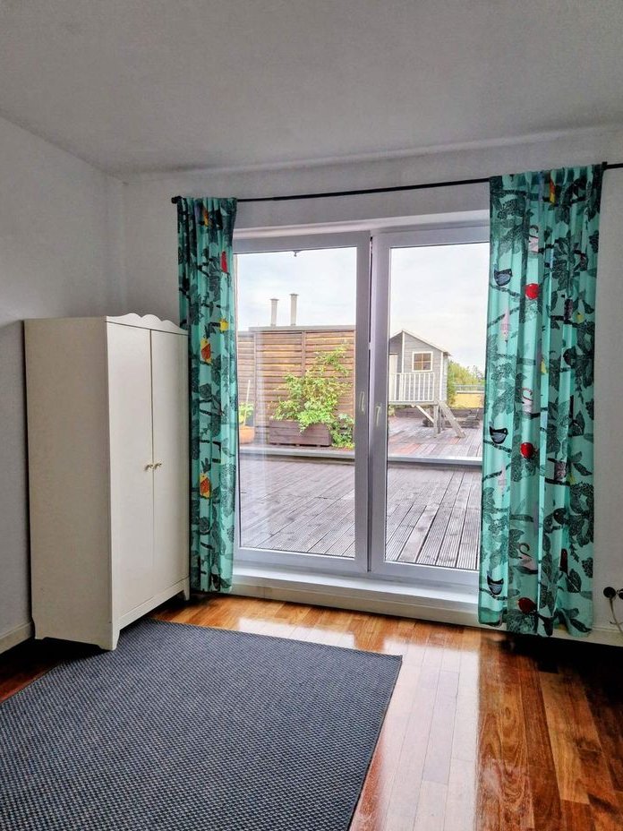 Okna wychodzą na trzy strony świata. Z salonu i z jednej sypialni wyjście na ponad 140 metrowy taras (do wyłącznego użytku). Z drugiej sypialni wyjście na kolejny kilkumetrowy taras.