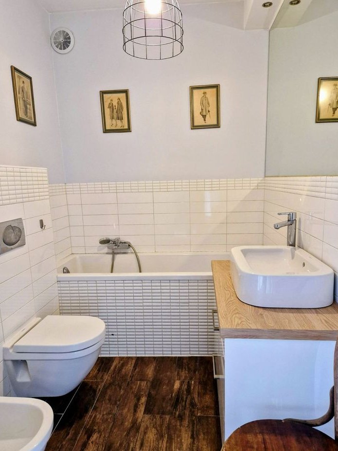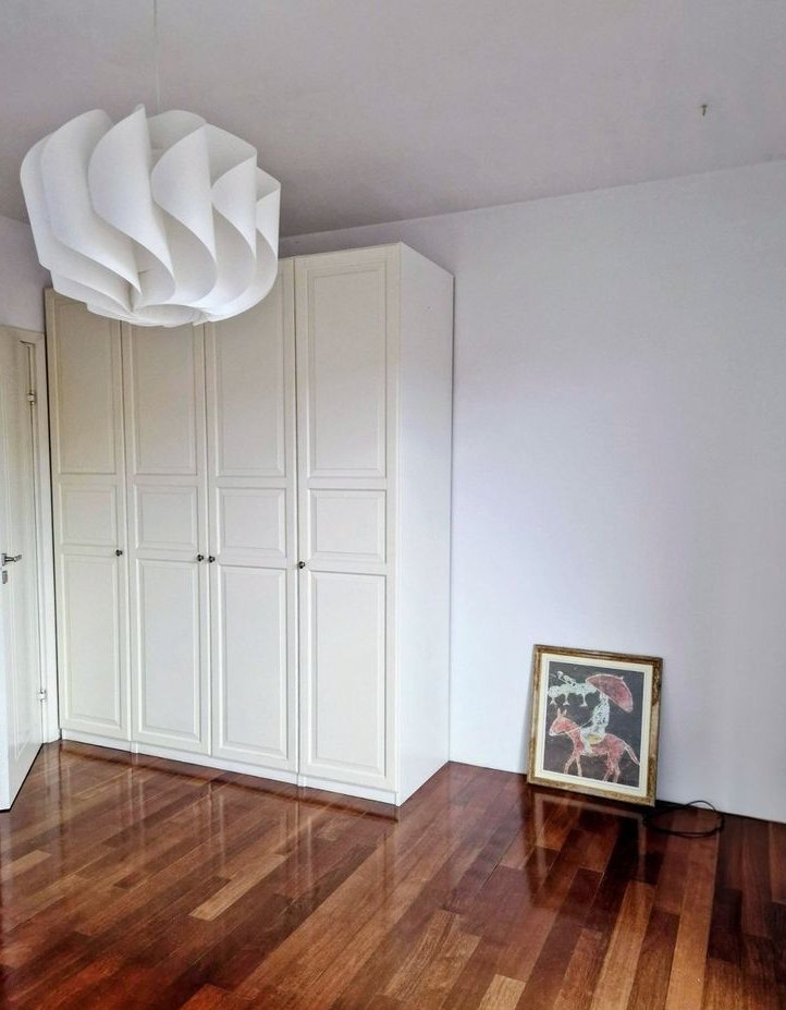 Mieszkanie kupowane dla siebie, wykończone materiałami wysokiej jakości, na podłodze parkiet drewniany merbau. Kuchnia robiona na wymiar. Markowe baterie i ceramika Duravit, na oknach lniane rolety rzymskie szyte na miarę.