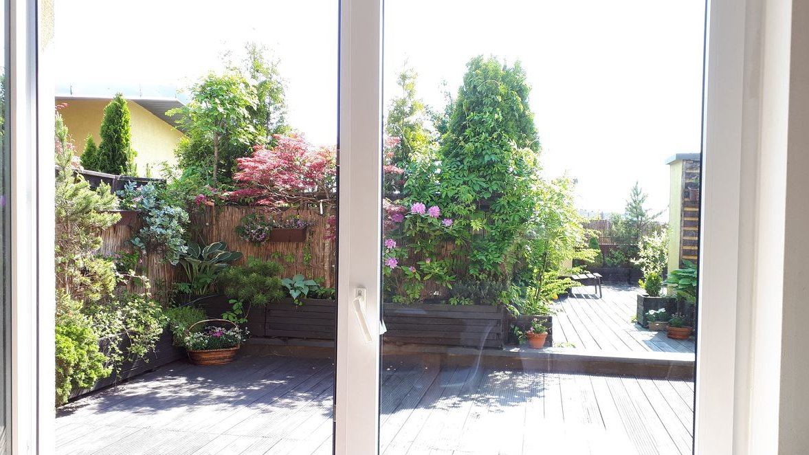 Absolutnie wyjątkowe połączenie wygody mieszkania w bloku z możliwością uprawiania pomidorów, roślin, czy zwykłego leniuchowania na leżakach.