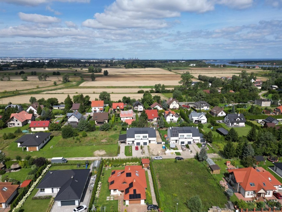 Dom znajduje się w cichej, kameralnej okolicy z zabudową jednorodzinną i bliźniaczą, przy spokojnej osiedlowej ulicy. Zaledwie kilka minut dzieli nieruchomość od urokliwej Wyspy Sobieszewskiej - idealnego miejsca na weekendowe spacery, plażowanie czy aktywny wypoczynek. Jednocześnie bliskość Gdańska zapewnia szybki dojazd do centrum miasta, szkół, sklepów i punktów usługowych.