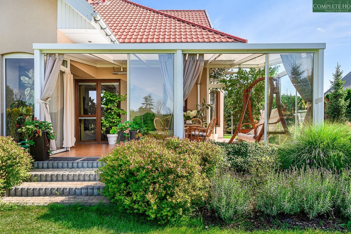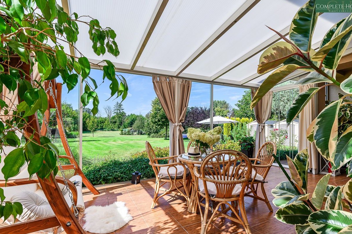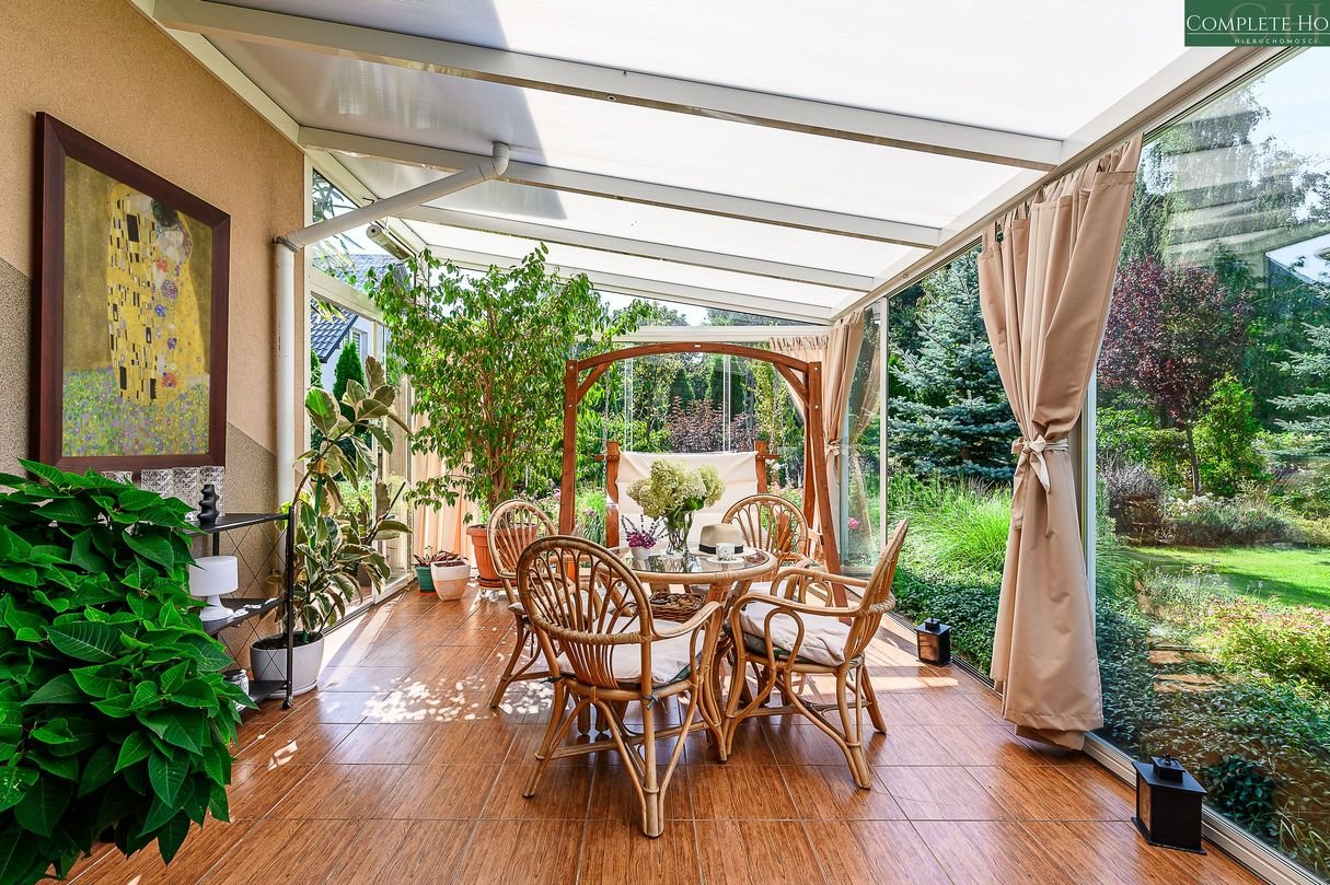 Do domu przynależy również taras z pięknym ogrodem zimowym oraz dwa balkony.