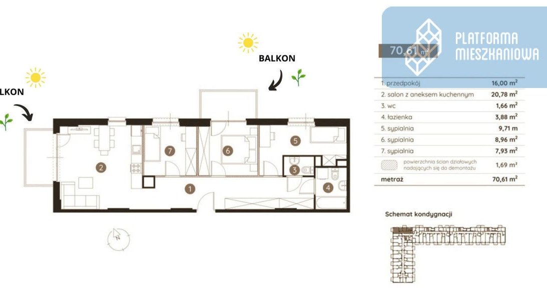 | Powierzchnia użytkowa | 70.61 m² |