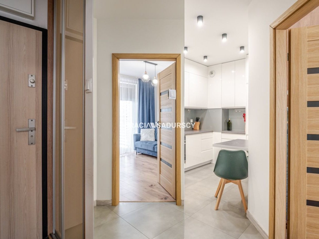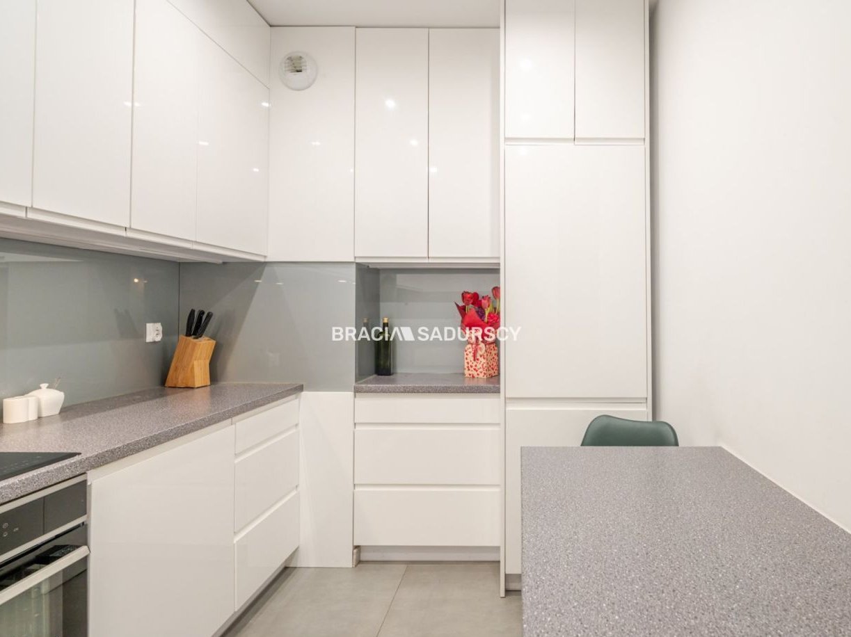 | Nowoczesne mieszkanie 2‑pokojowe z dużym balkonem – wysoki standard, Żabiniec, Casa FelizNa sprzedaż wyjątkowe mieszkanie wykończone w wysokim standardzie, zaprojektowane z myślą o dwóch niezależnych pokojach oraz komfortowej, wspólnej przestrzeni dziennej w postaci funkcjonalnej kuchni. Całe umeblowanie zostało wykonane przez stolarza na wymiar, co gwarantuje spójność stylistyczną, trwałość i maksymalne wykorzystanie przestrzeni.Najważniejsze atuty mieszkaniaDuży balkon o pow. 10–11 m² – przestronny, ustawny, z ekspozycją wschodnią, idealny na poranną kawę