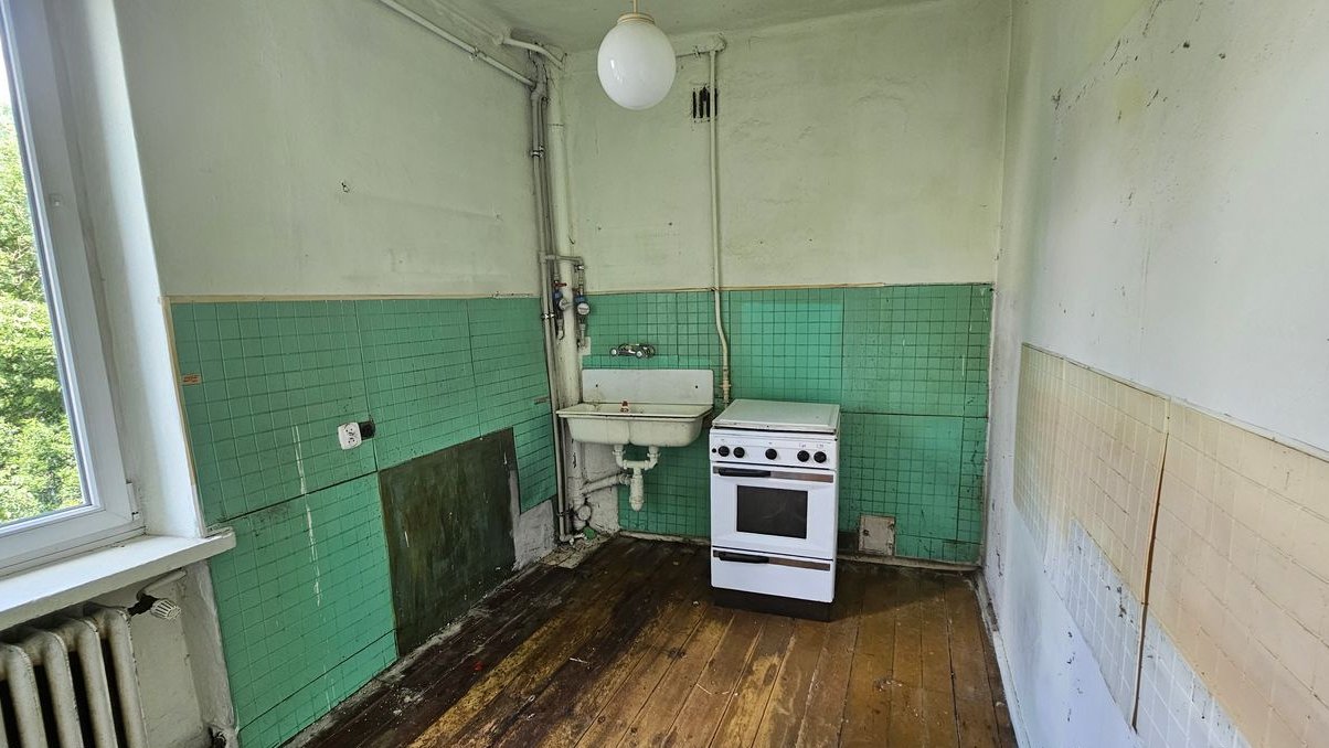 Mieszkanie wymaga remontu, prócz wymiany okien (PCV w dobrym stanie).