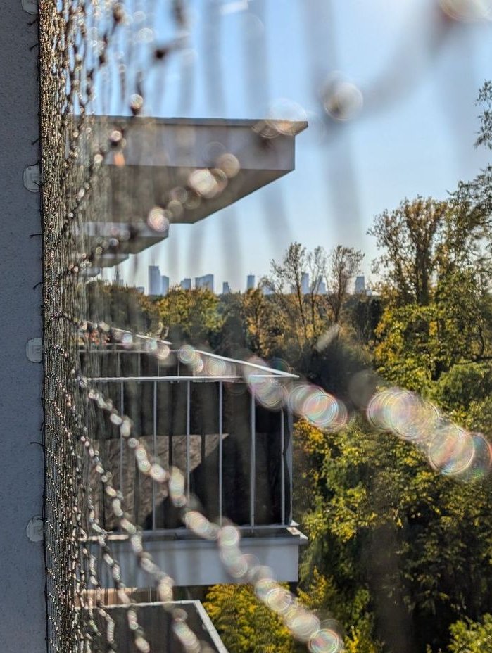 zabezpieczony siatką (bezpieczeństwo dzieci i zwierząt)