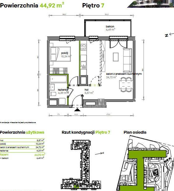 | Powierzchnia użytkowa | 44.92 m² |