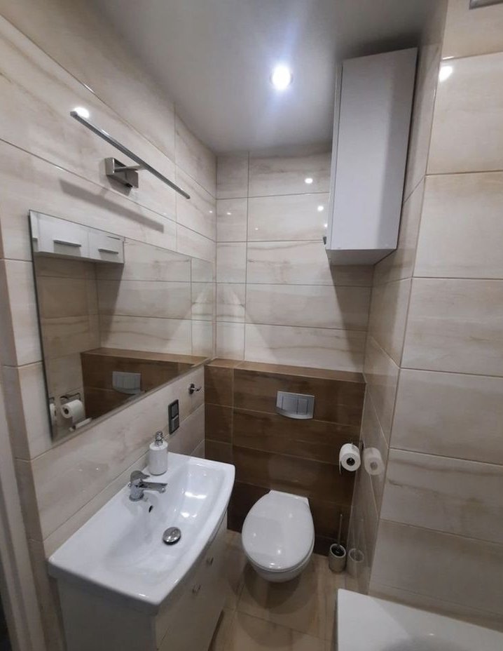 To mieszkanie ma bardzo praktyczny rozkład – oddzielna kuchnia i wyraźny podział stref sprawiają, że przestrzeń jest komfortowa zarówno dla pary, jak i małej rodziny.