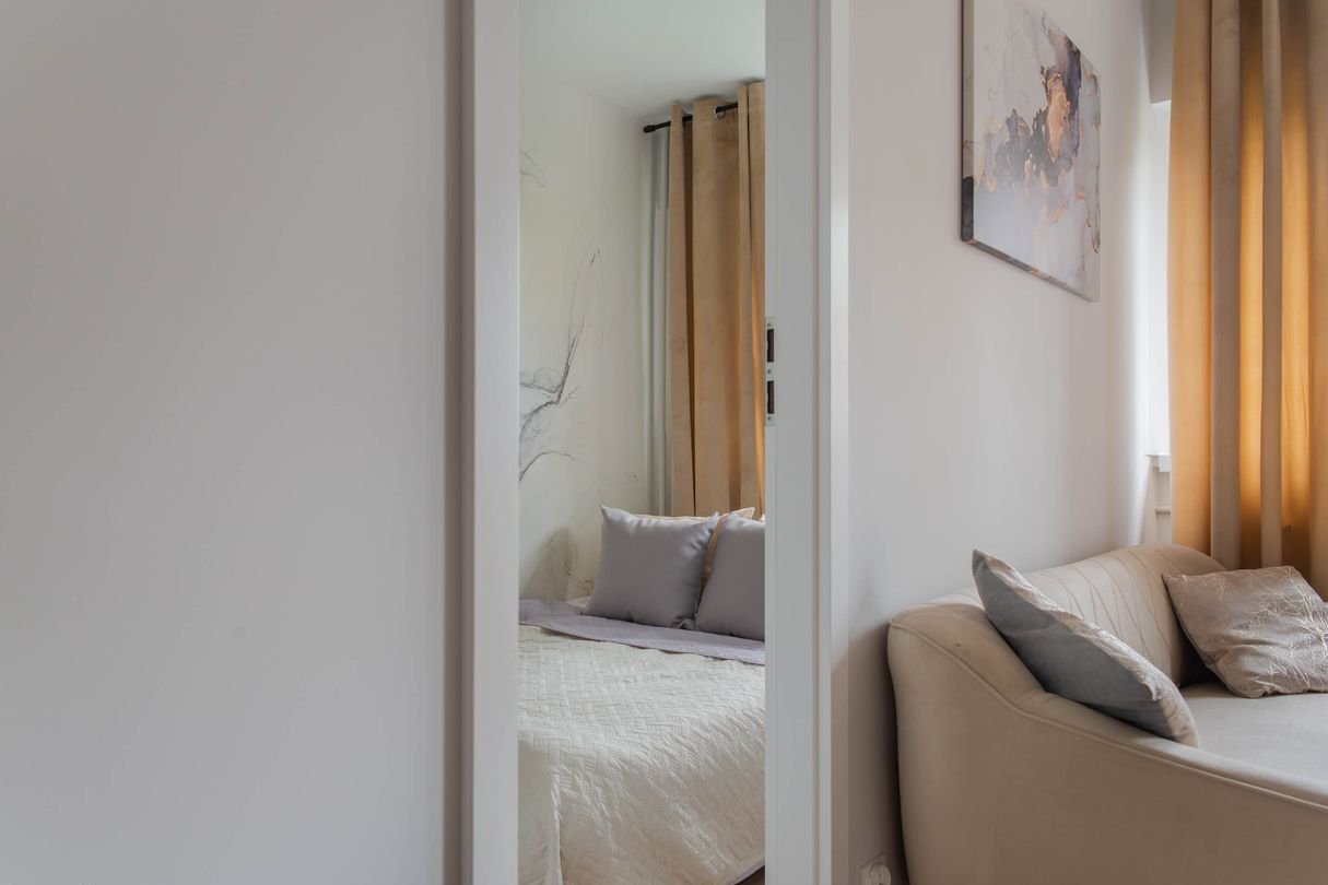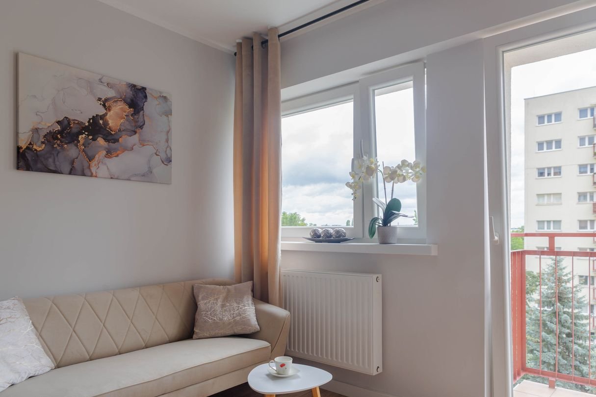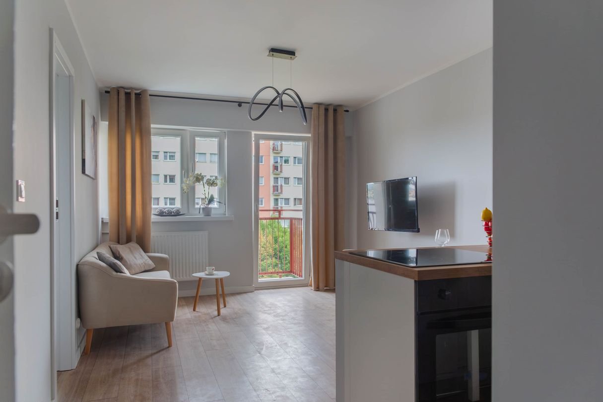 - świetny rozkład mieszkania – salon z aneksem kuchennym, osobna sypialnia, łazienka, balkon