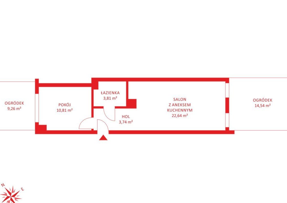 14,54 m² - zlokalizowany od strony tylnej budynku, graniczący z zabudową jednorodzinną, co zapewnia ciszę i kameralny charakter,