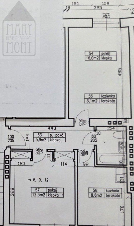 Apartament o powierzchni 46,6 m, obecnie składa się z : dwóch pokoi (12 i 16 m ) widnej kuchni (8,6 m) , przestronnego przedpokoju i łazienki z WC.