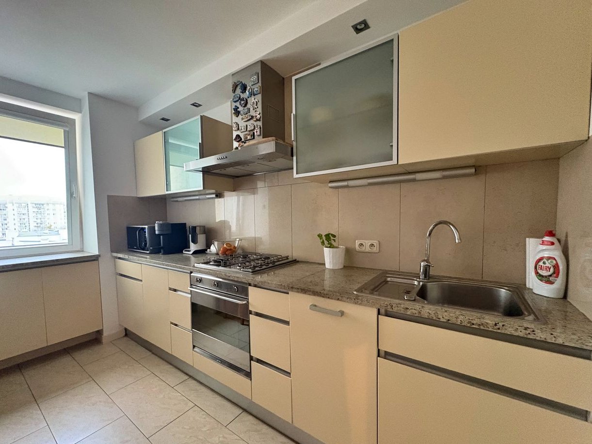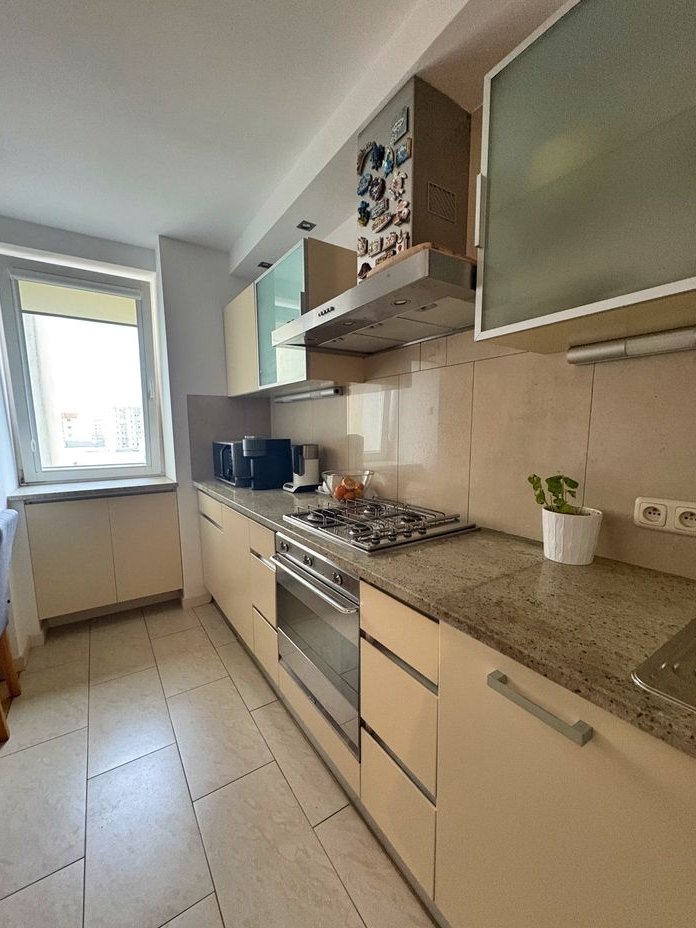 Mieszkanie przestronne, na siódmym piętrze w budynku z 1993 roku. Lokal po remontach, w dobrym stanie technicznym – wymaga jedynie odświeżenia.