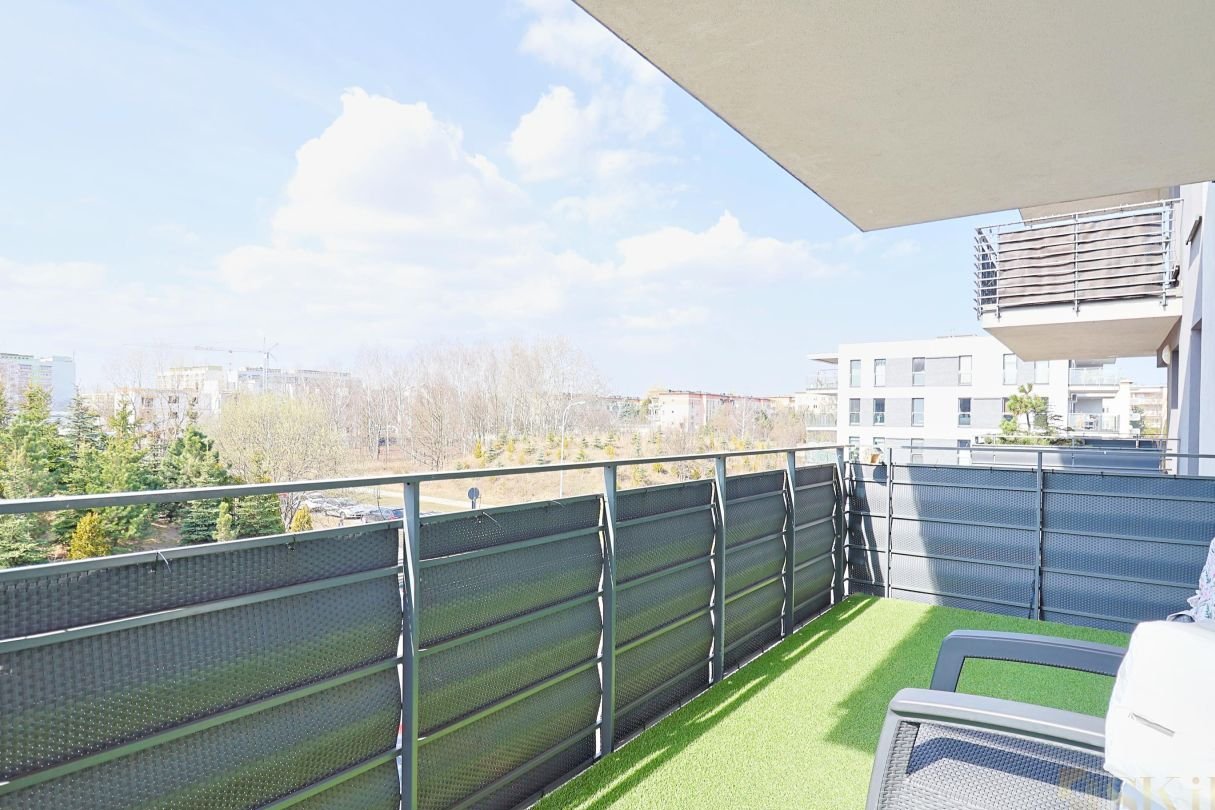Ogromną zaletą jest duży balkon wyposażony w meble ogrodowe.
