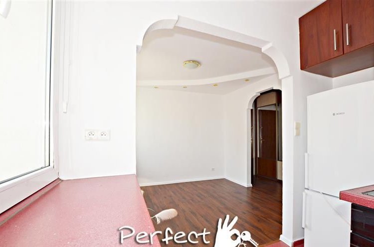W pierwotnym układzie kuchnia miała osobne wejście z przedpokoju lecz była mała i nieustawna, aktualnie wyburzona ściana między nią i salonem zyskała więcej przestrzeni i możliwość wygodnej zabudowy z miejscem na lodówkę.