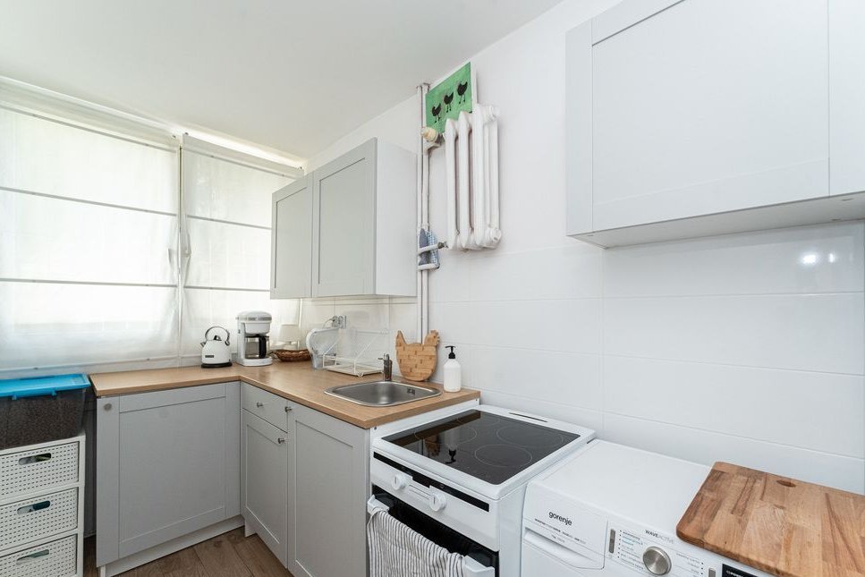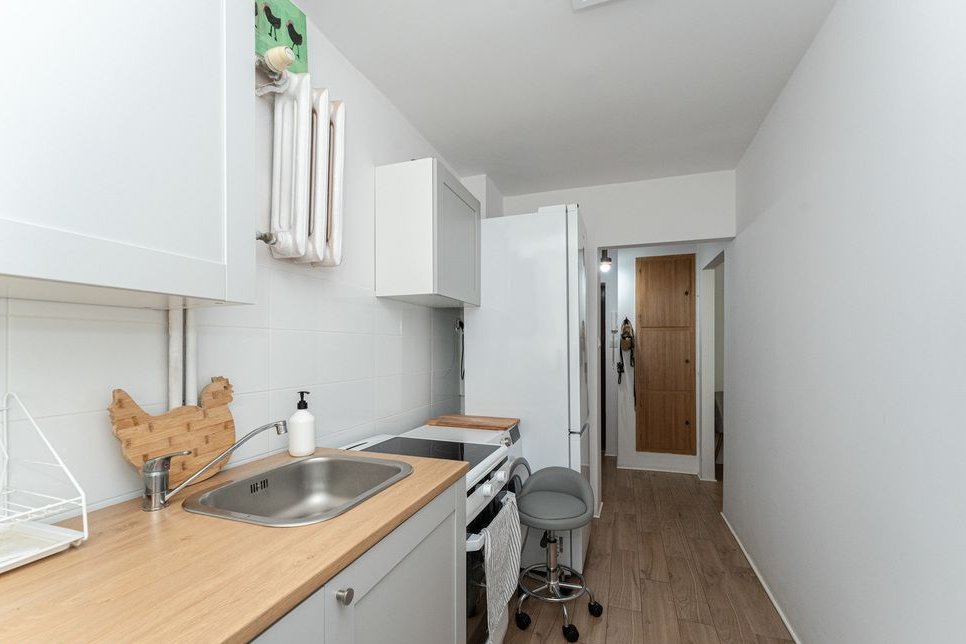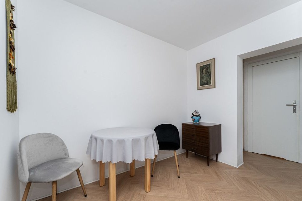 Podłogi w kuchni oraz łazience wyłożone kafelkami imitujące drewno, w pozostałej części nieruchomości podłogi wyłożone drewnem. Mieszkanie ma ekspozycję okien południowo-zachodnią, dzięki czemu jest doskonale doświetlone. Nieruchomość przeszła gruntowny remont w 2022 roku, wraz z wymianą instalacji elektrycznej, pionów wodnokanalizacyjnych. Lokal jest w pełni umeblowany i gotowy do zamieszkania.
