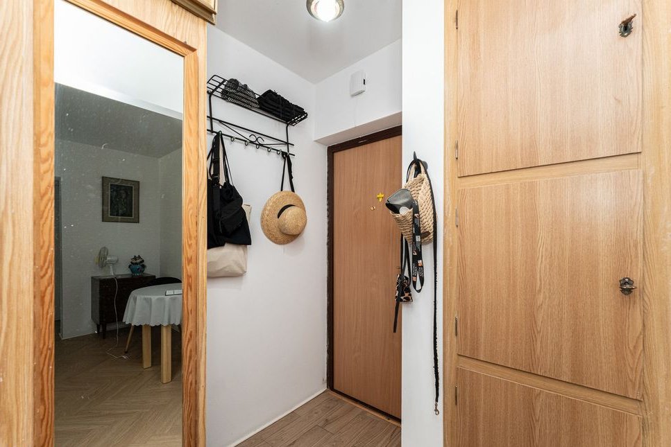 W przedpokoju, o powierzchni 2,55m2, mieści się szafa oraz wieszak na ubrania.