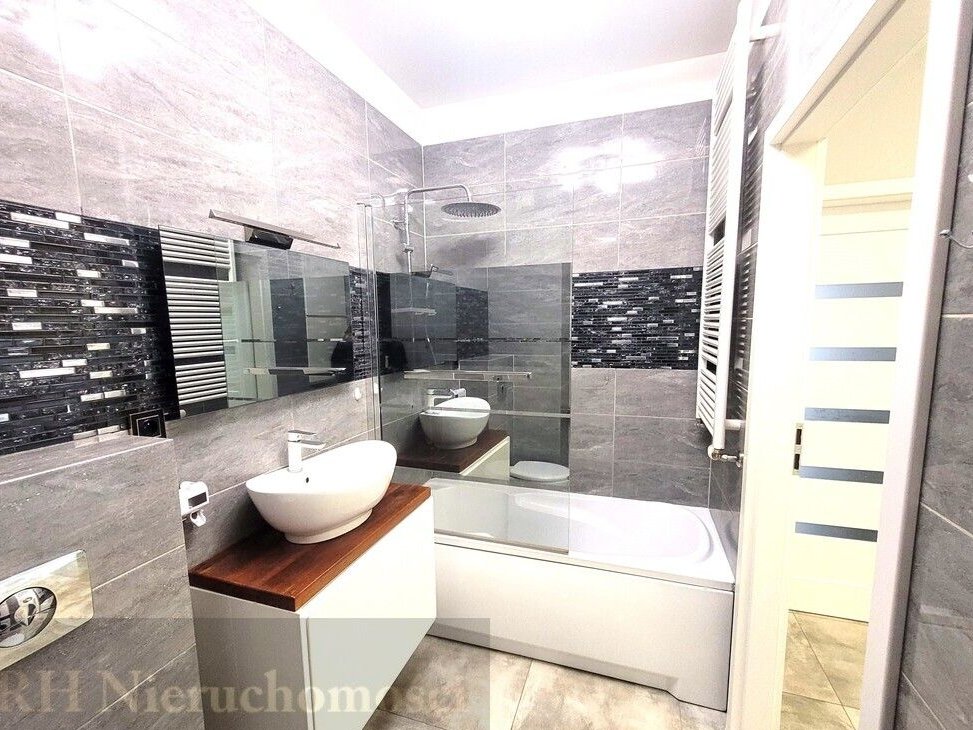 - łazienka (wanna z parawanem i deszczownicą, meble na wymiar),