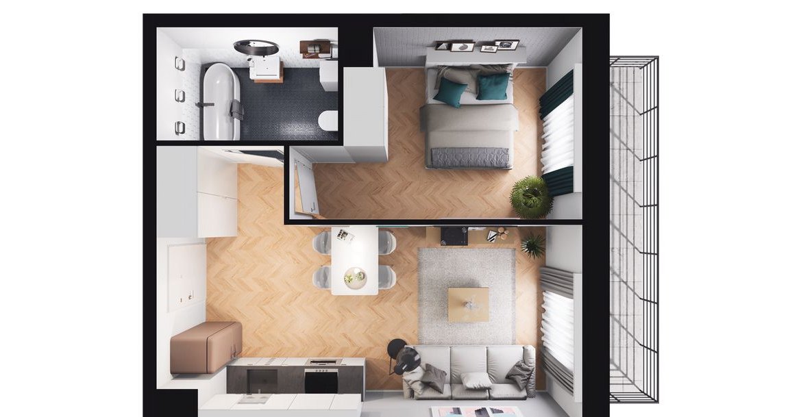 2-pokojowe mieszkanie numer 128 na 5. piętrze w Inwestycji Krakowskie Tarasy V Dewelopera IMS Budownictwo