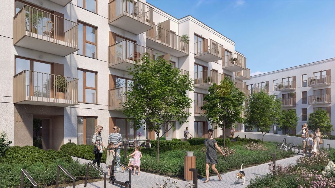 Dostępne są mieszkania z balkonami, ogródkami lub tarasami, otoczone osiedlowymi terenami zielonymi. Dla najmłodszych przewidziano plac zabaw.