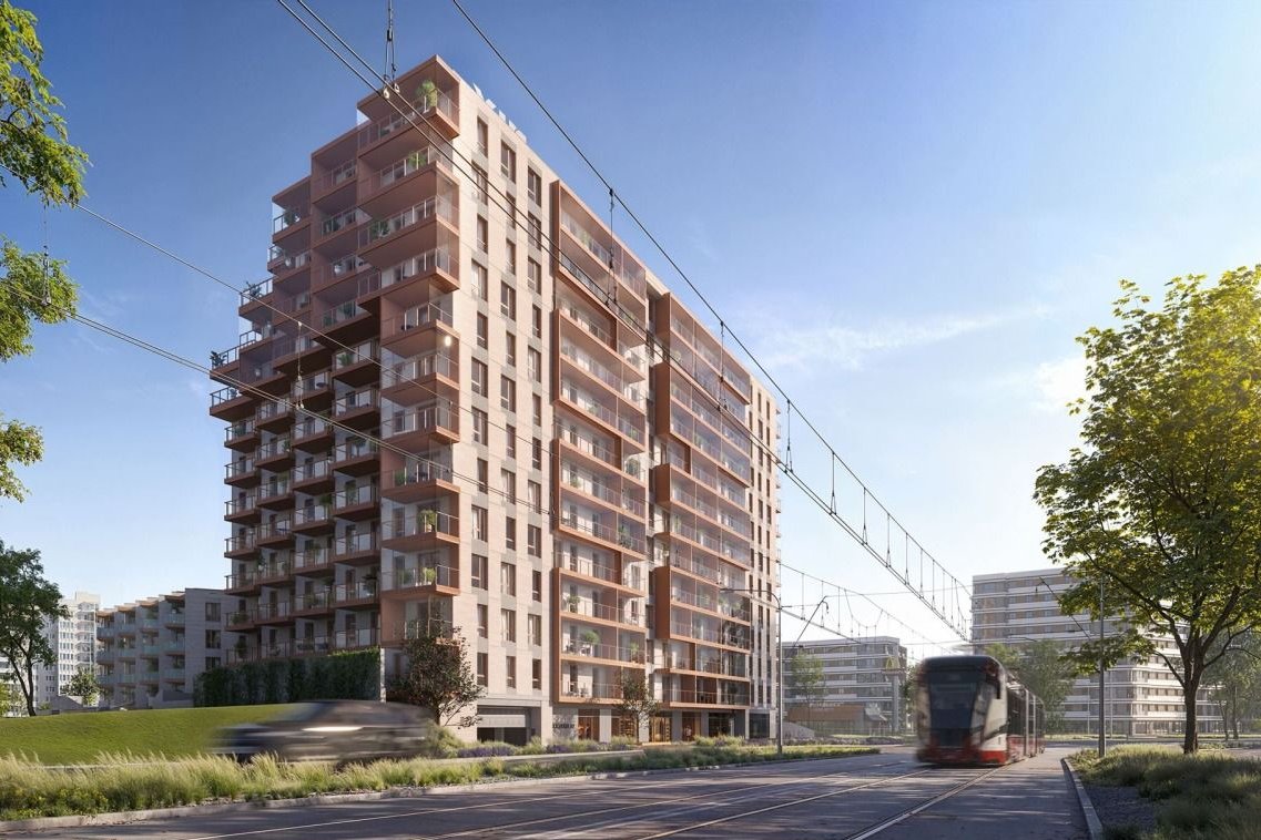Design tego miejsca mówi sam za siebie. Elewacja zostanie wykonana z wysokiej jakości płytki mineralnej o smukłych proporcjach. Jasnoszary odcień płytek zostanie połączony z elementami cieplejszego brązu, a cała kompozycja odznaczy się na tle sąsiednich inwestycji. Brąz pojawiający się w okolicach okien i balkonów pomoże przełamać monolityczność bryły i w subtelny sposób nada jej lekkości, podkreślając jednocześnie jej dynamiczny wygląd. Na szczególną uwagę zasługują balkony i tarasy na najwyższych kondygnacjach. Ich specyficzne rozmieszczenie tworzy układ kaskadowy. Motyw schodkowania elewacji będzie wspólnym elementem obu części inwestycji.