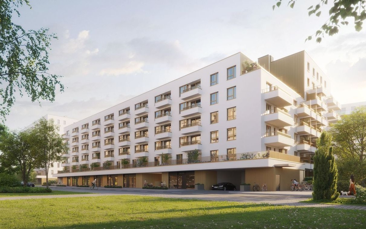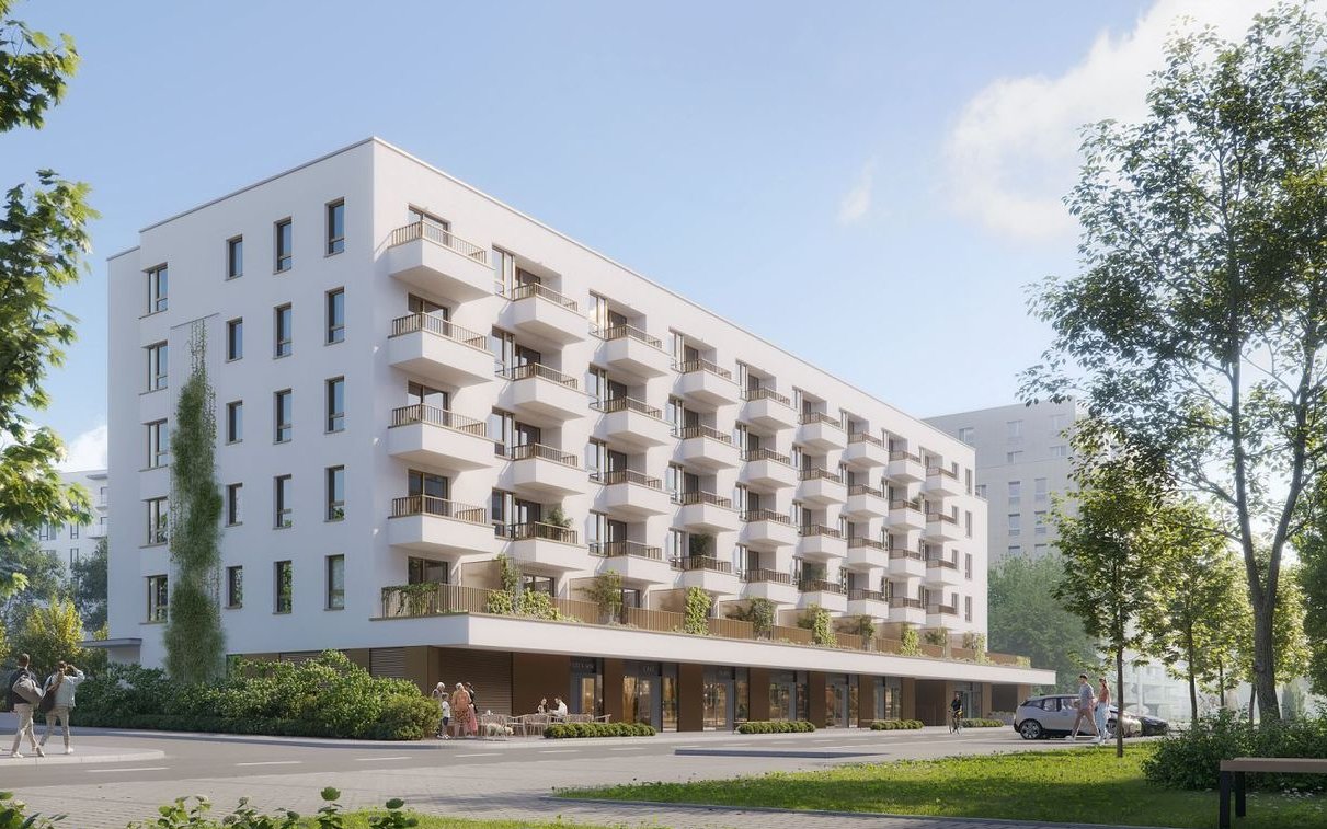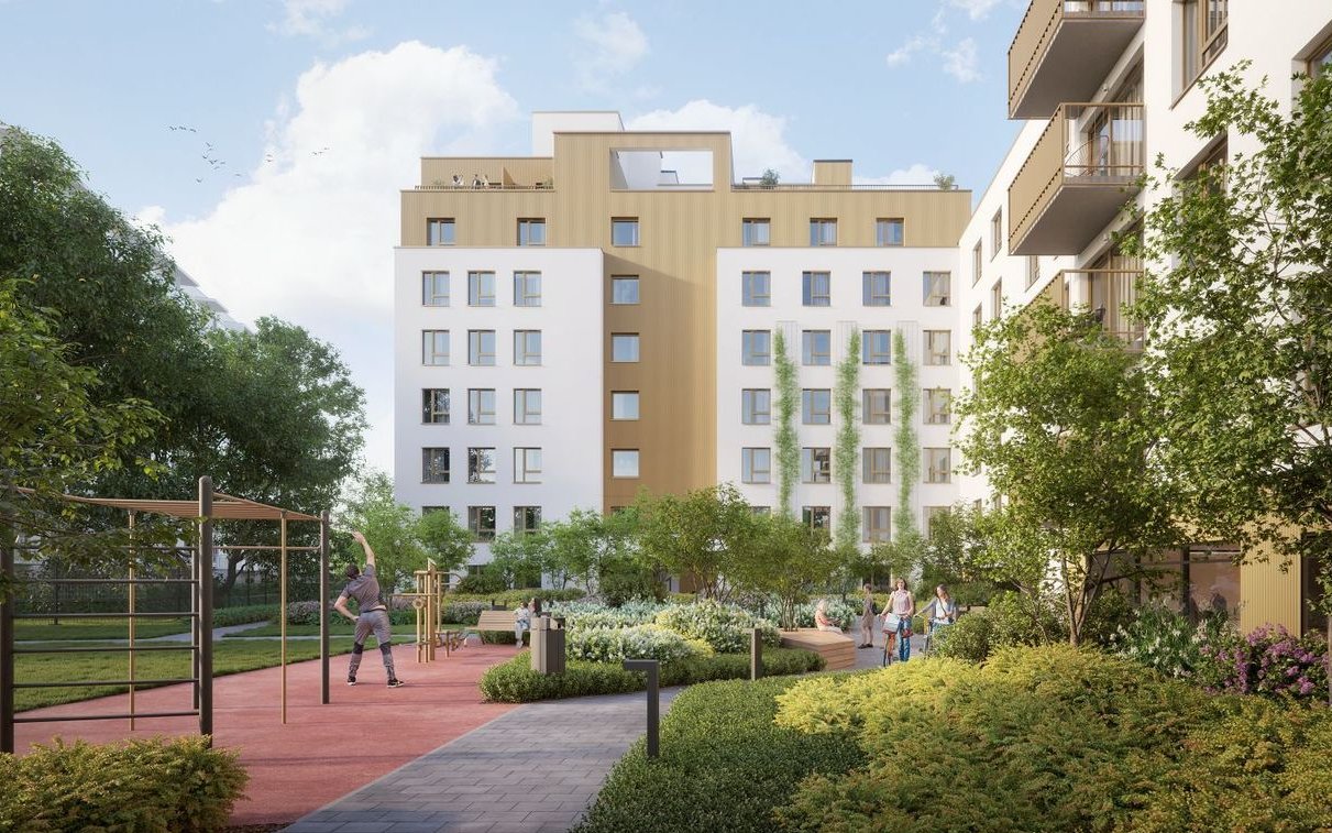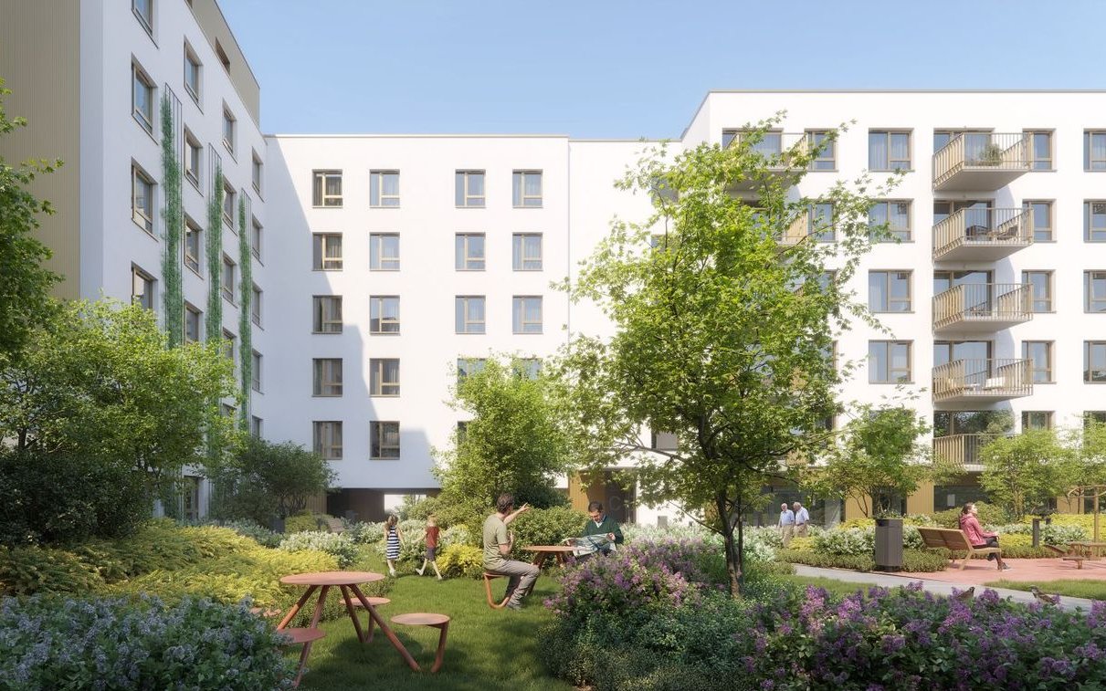 Na elewacjach znajdzie się pnąca roślinność, a na pierwszych piętrach budynków – pergole. Całość dopełnią ekologiczne rozwiązania: ogrody deszczowe z retencją wody, zielone dachy i panele fotowoltaiczne.