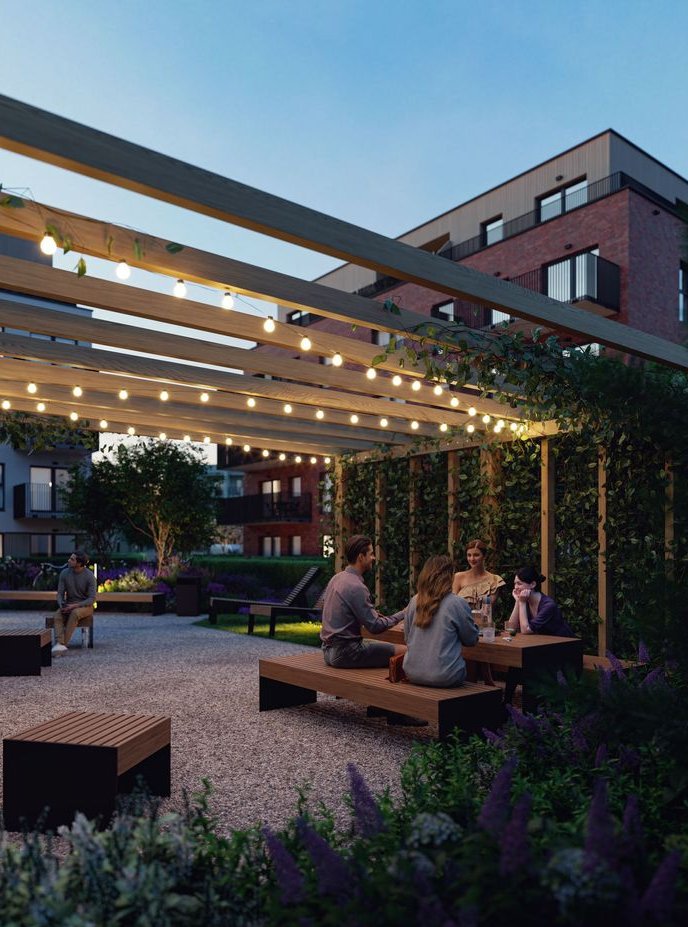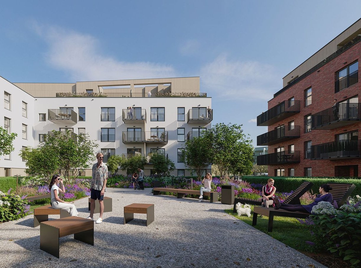 W częściach wspólnych przewidziano plac inicjatyw społecznych – gdzie będzie można zorganizować piknik rodzinny czy warsztaty – las kieszonkowy z brzozami oraz wybieg dla psów. Na osiedlu znajdą się również ogrody deszczowe i poidła oraz domki dla małych zwierząt.