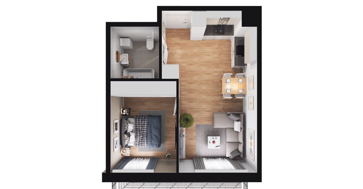 Budynek oferuje 107 mieszkań o powierzchniach od 26 do 109 mkw. i układach od 1- do 4-pokojowych. Każde mieszkanie będzie posiadało ogródek lub loggię/balkon.