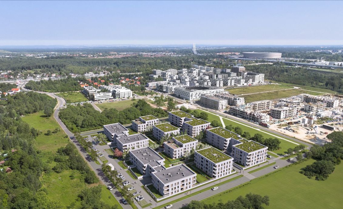 Osiedle będzie charakteryzowało się niską zabudową w układzie kaskadowym, obejmującą budynki o trzech i czterech piętrach. Całość utrzymana jest w przyjemnej kolorystyce, łączącej ciepłą biel i subtelne odcienie szarości, z delikatnymi lamelami w jasnym brązie, które nadają harmonijny charakter przestrzeni.