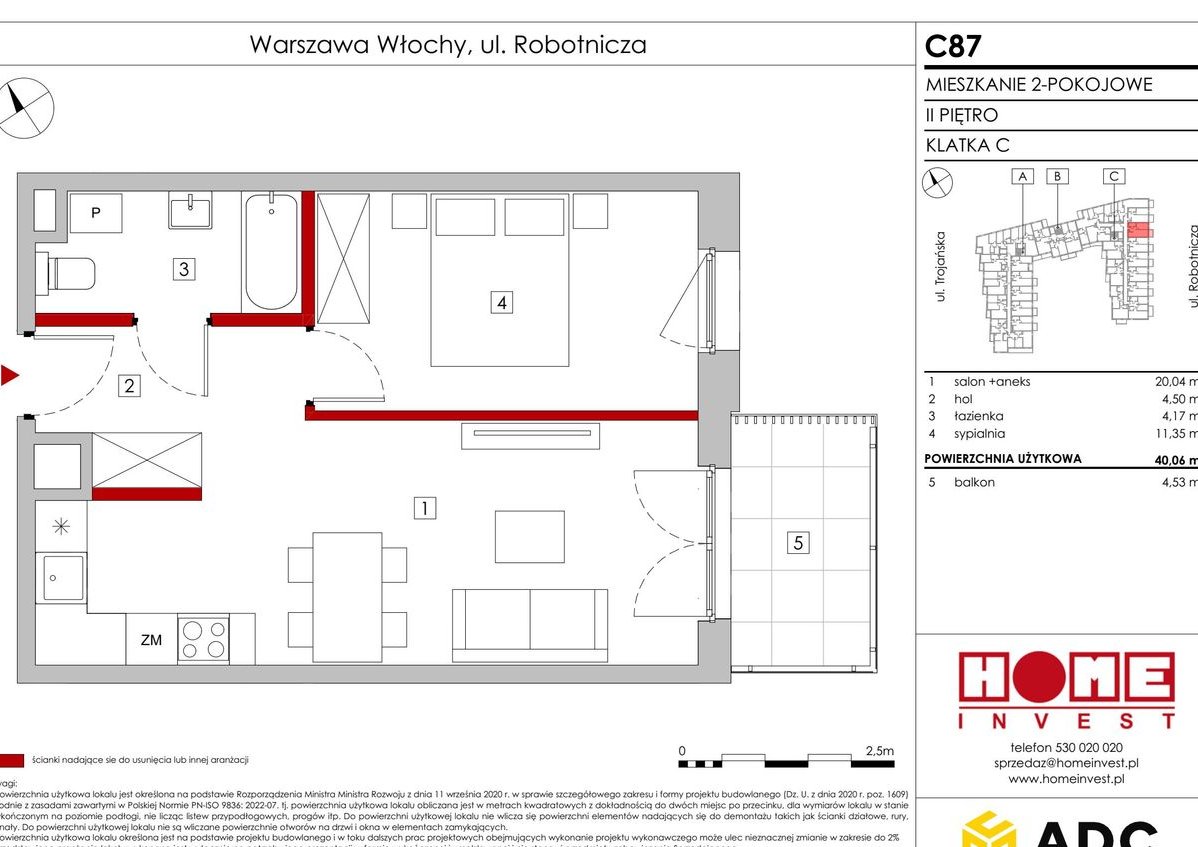 2-pokojowe mieszkanie numer ZW-C87 na 2. piętrze w Inwestycji Zakątek Włochy Dewelopera Home Invest