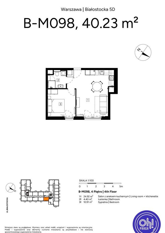 2-pokojowe mieszkanie numer M098 na 4. piętrze w Inwestycji Oh! Praga Dewelopera Białostocka Property