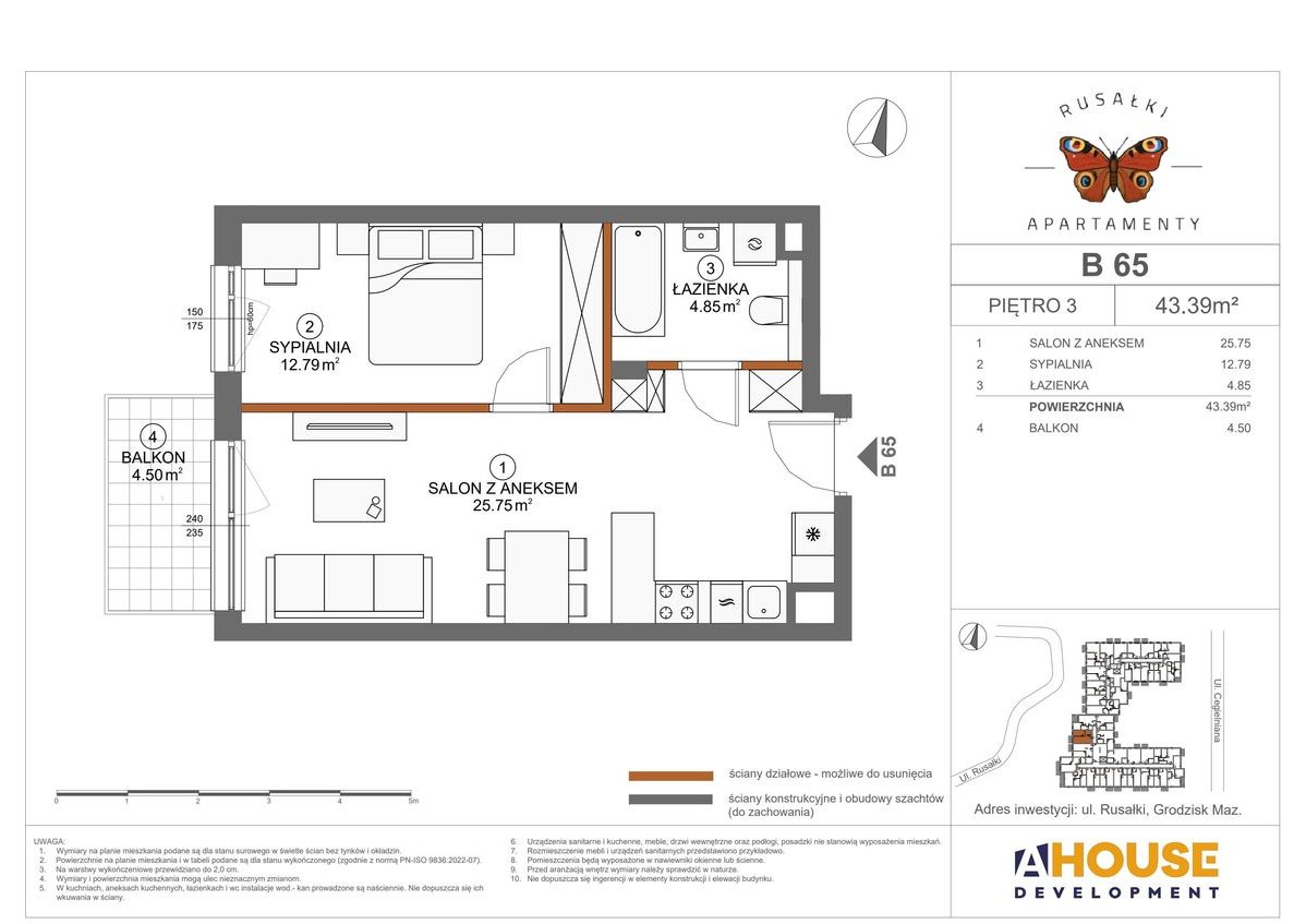 2-pokojowe mieszkanie numer B 65 na 3. piętrze w budynku B w Inwestycji Apartamenty Rusałki Dewelopera aHouse