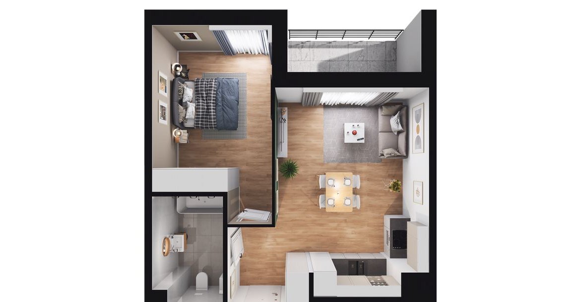 2-pokojowe mieszkanie numer B.7.4.38 na 4. piętrze w budynku B w Inwestycji Enso Wilanów Dewelopera Yareal Polska